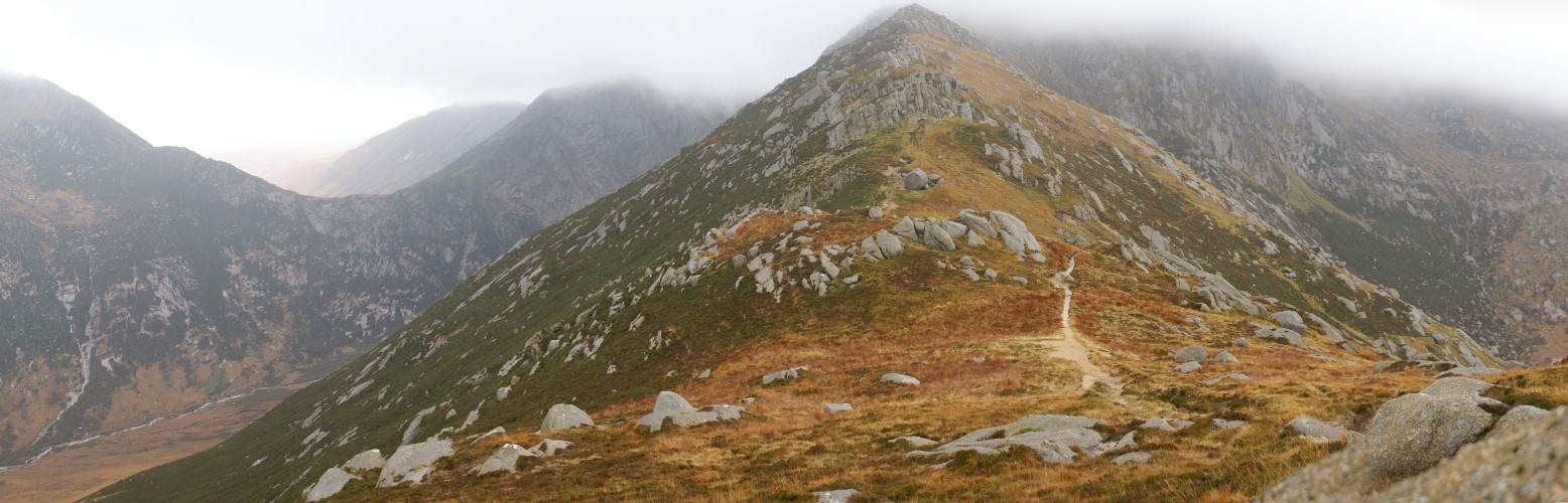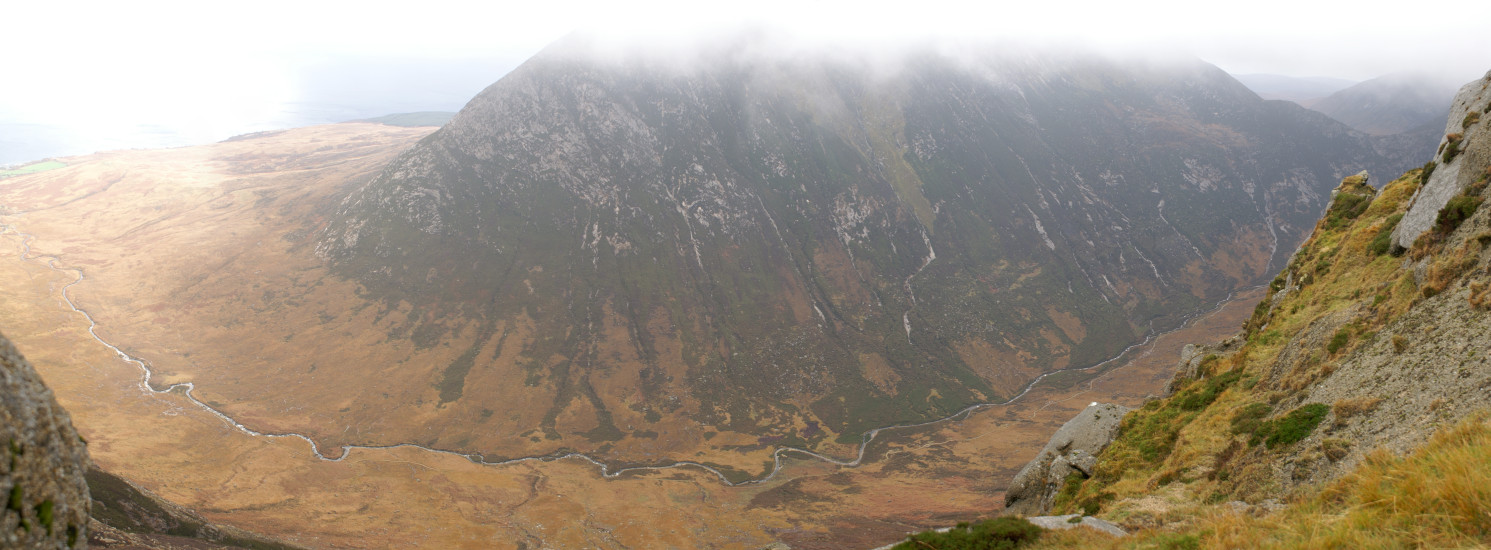 Looking down Glen Sannox from between Caisteal Abhail and Cìr Mhór