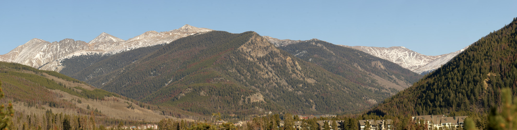 However, on the way down I stumbled upon an opening in the trees and got a fantastic open view of Dillon Reservoir and the mountain ranges reaching up behind it.